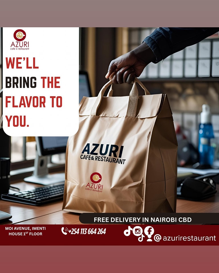 Located at the heart of Nairobi’s CBD, Azuri Café & Restaurant offers a perfect blend of African and international cuisine, modern hospitality, and everyday comfort. Whether you’re dining in, ordering for delivery, or hosting an event, Azuri is where great meals and warm service meet.